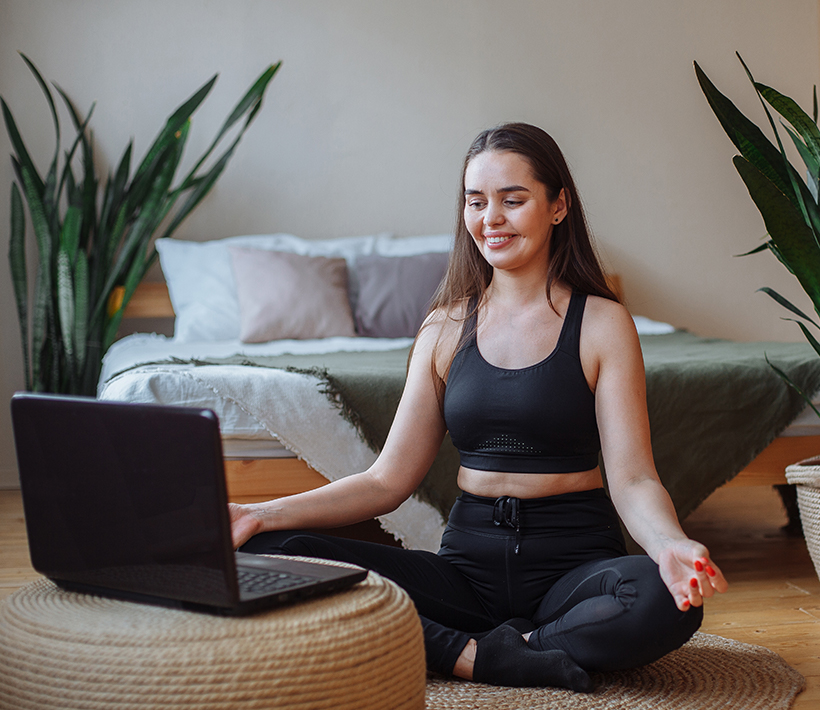 A yoga instructor at home can guide calming routines for stress and relaxation.