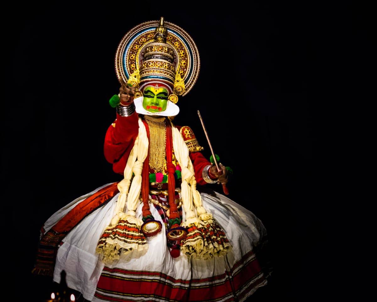 Kerala’s vibrant art forms like Kathakali and Mohiniyattam showcase its rich cultural traditions.
